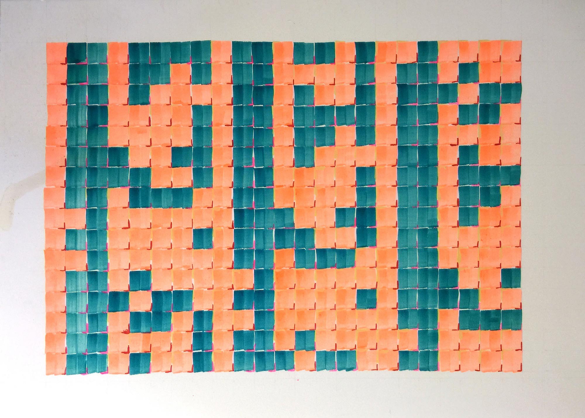 gouache, graphite on panel, 24 x 24 x 2 in.